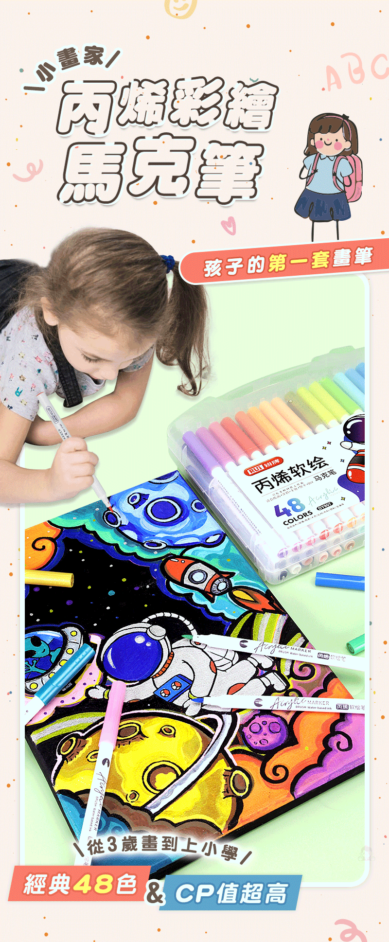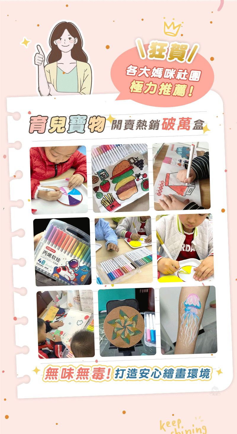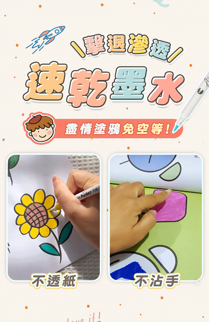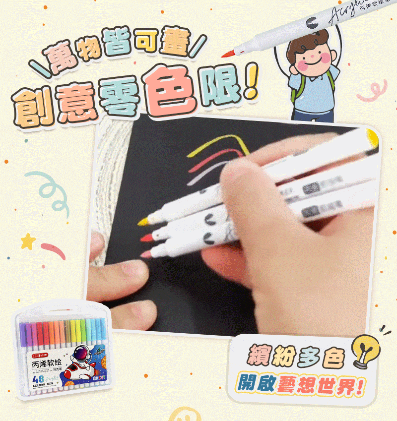 半小時前丙烯彩繪馬克筆 超強覆蓋力,萬物材質皆可畫,專為兒童研發,輕鬆擦拭不卡色 - 【一套】丙烯彩繪馬克筆 (48色)NT$580