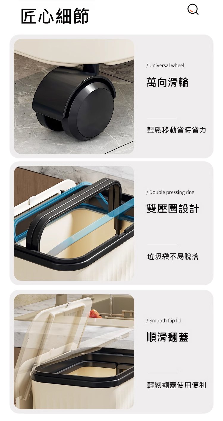 4分鐘前【不彎腰】家用可移動多功能置物垃圾桶 - 【超殺*贈20垃圾袋】1入組$279