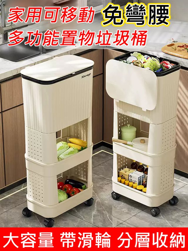 12分鐘前【不彎腰】家用可移動多功能置物垃圾桶 - 【超殺*贈20垃圾袋】1入組$279