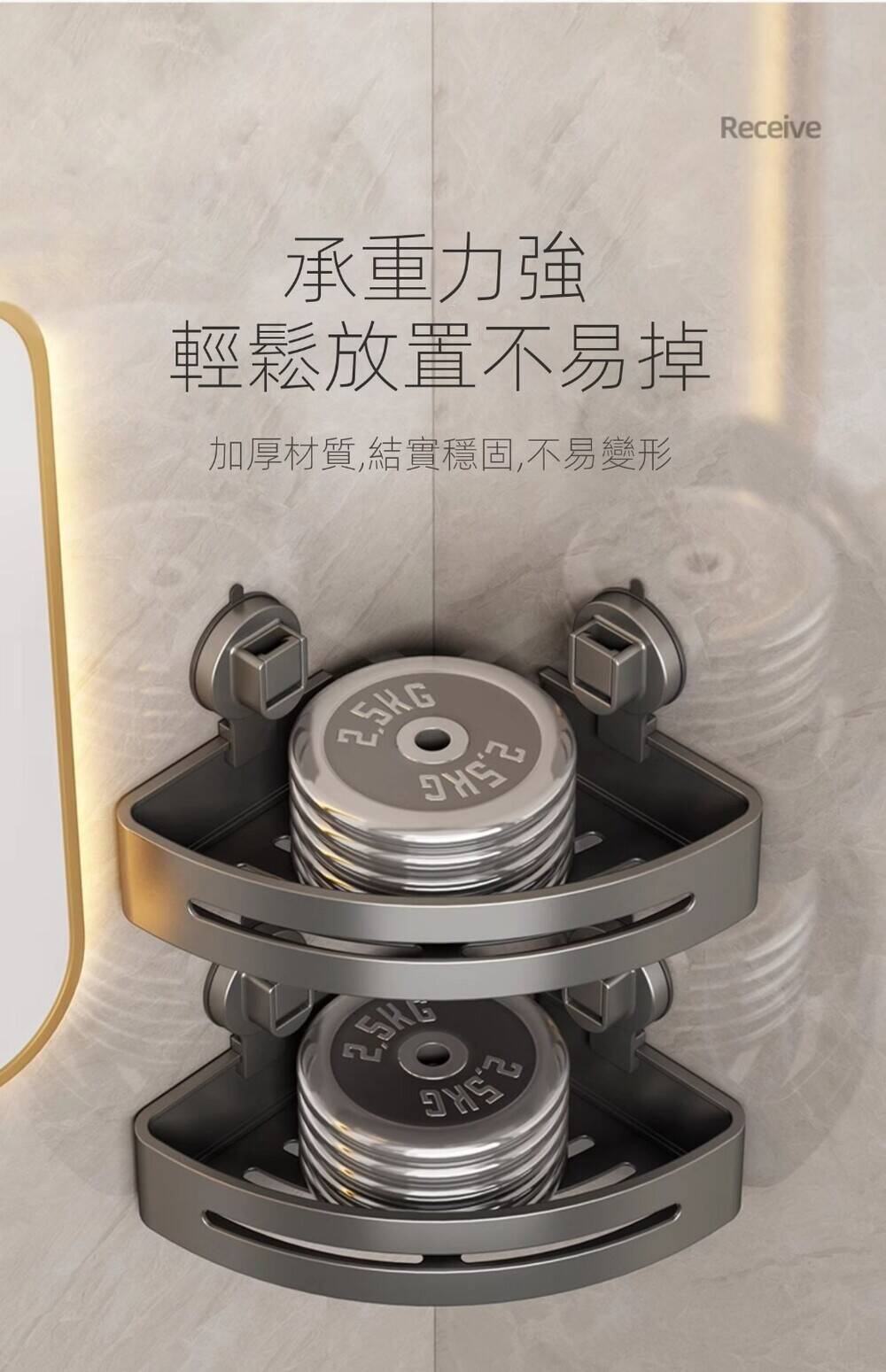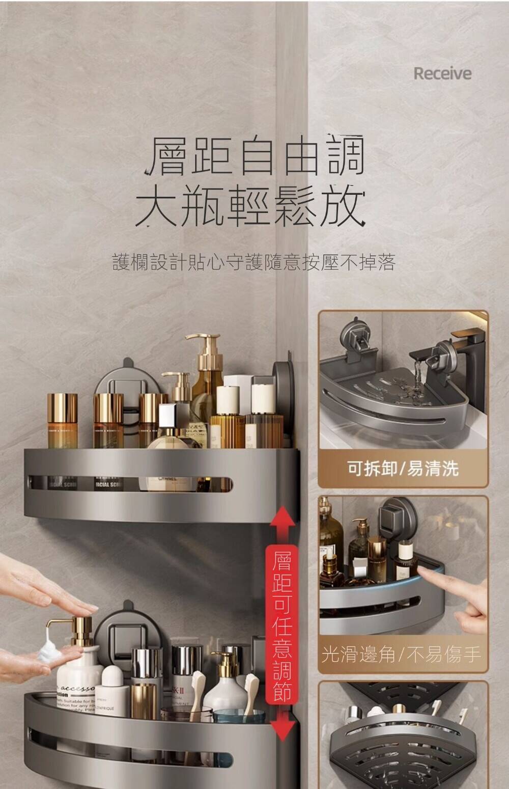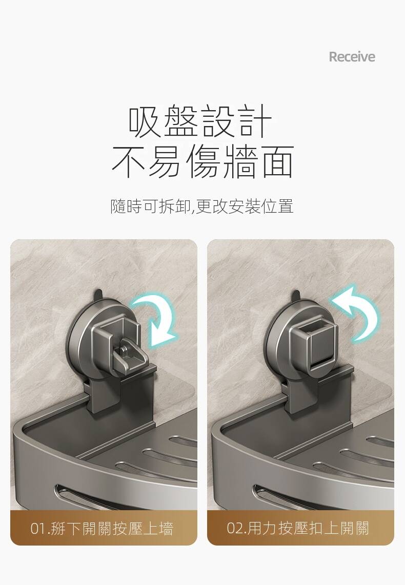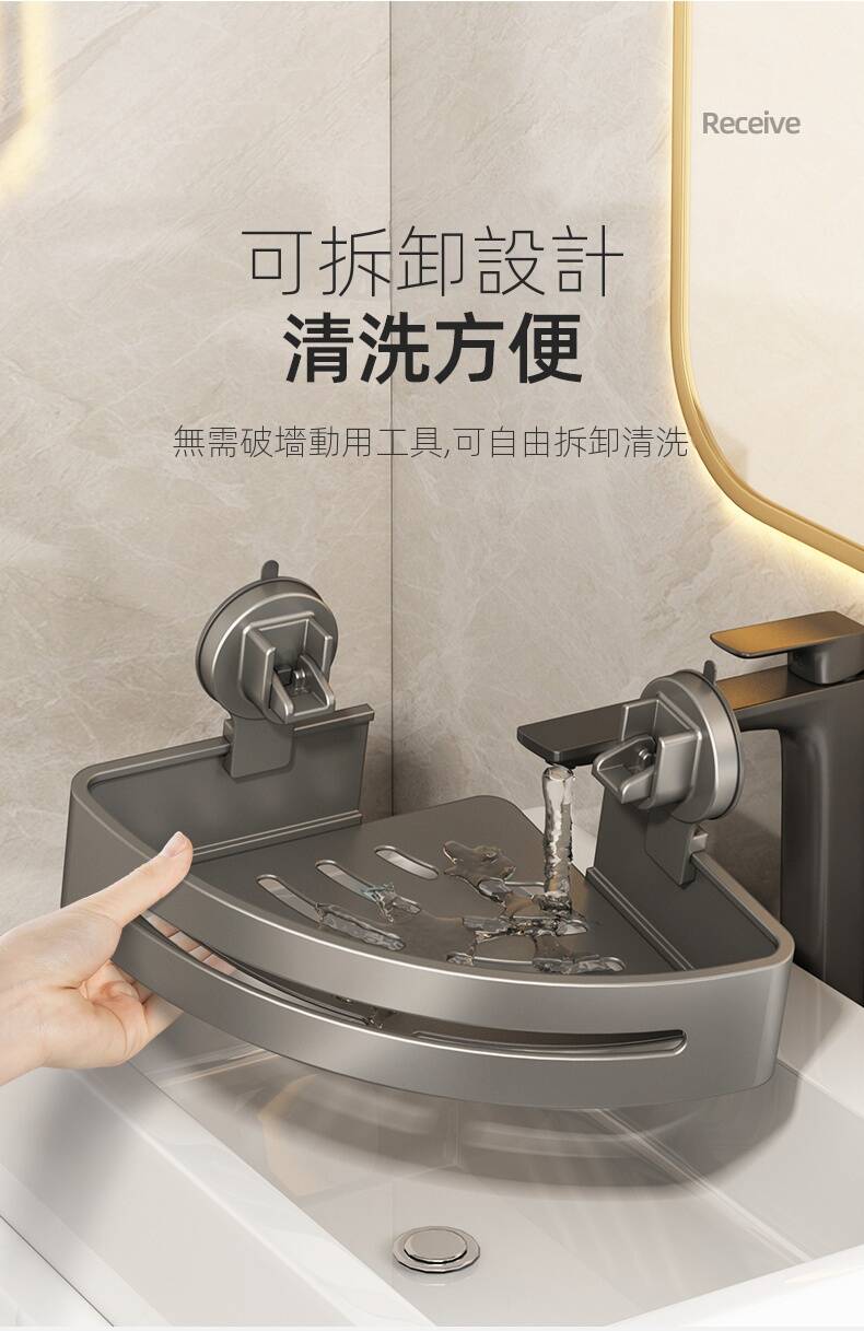 20分鐘前自帶吸盤,可隨時移動重復使用的置物架 免打孔廚房浴室衛生間三角置物架多用途壁掛收納架毛巾架 - 【超夯下殺】買一送二,共三入組 NT$999