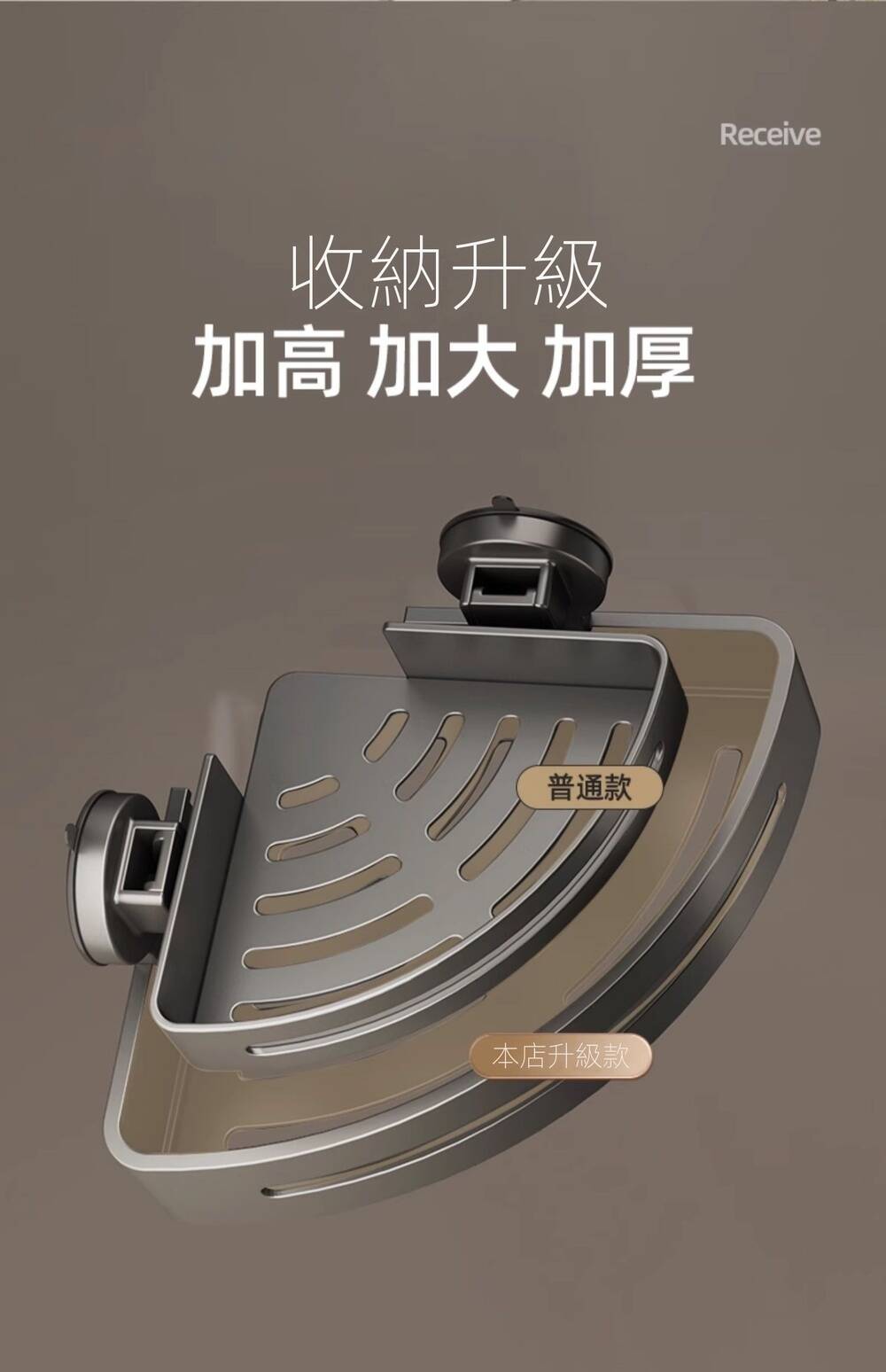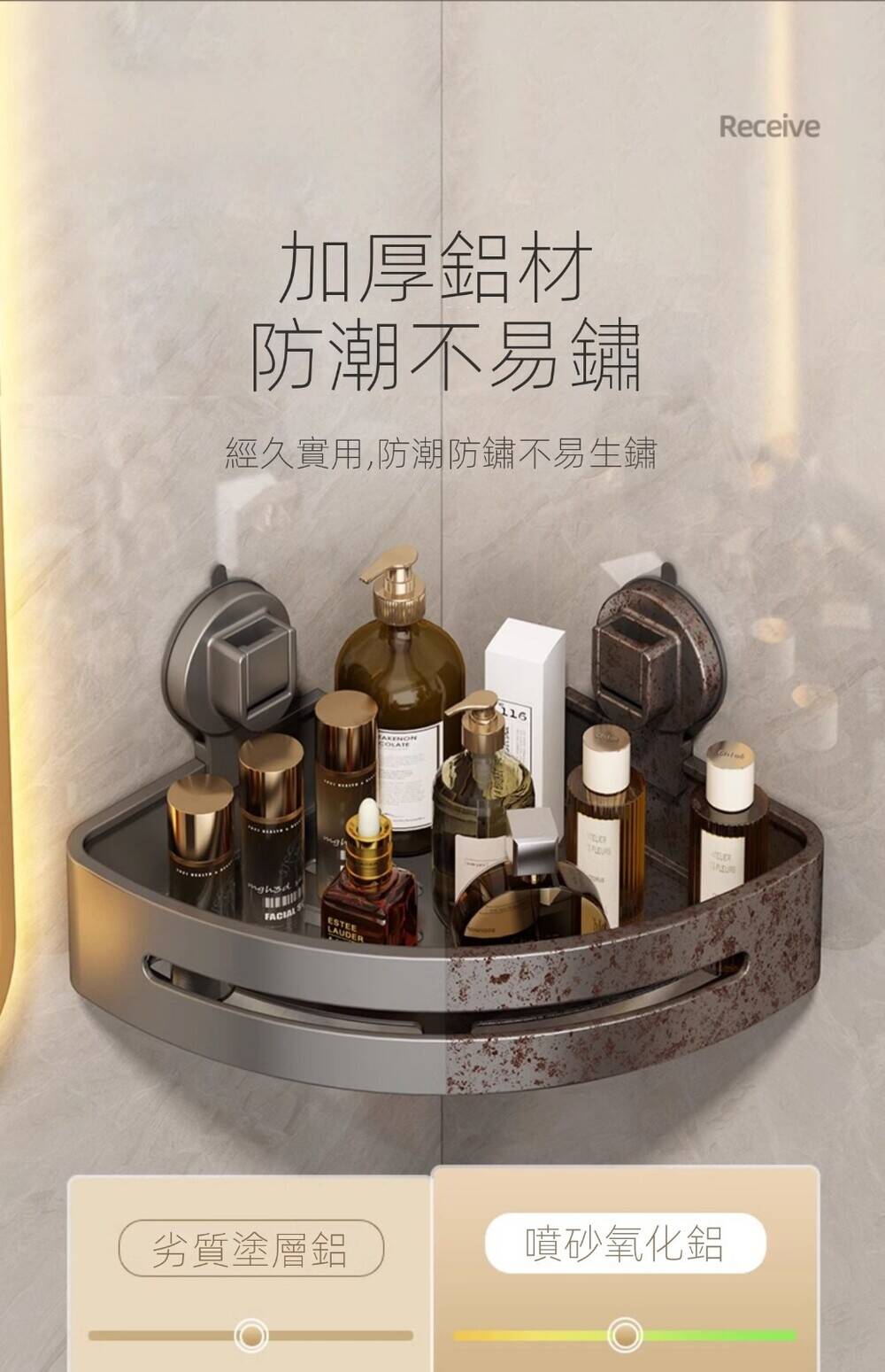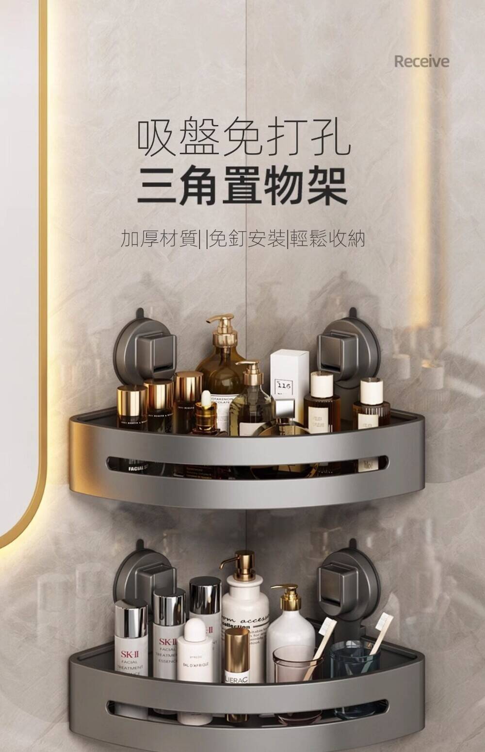 20分鐘前自帶吸盤,可隨時移動重復使用的置物架 免打孔廚房浴室衛生間三角置物架多用途壁掛收納架毛巾架 - 【超夯下殺】買一送二,共三入組 NT$999