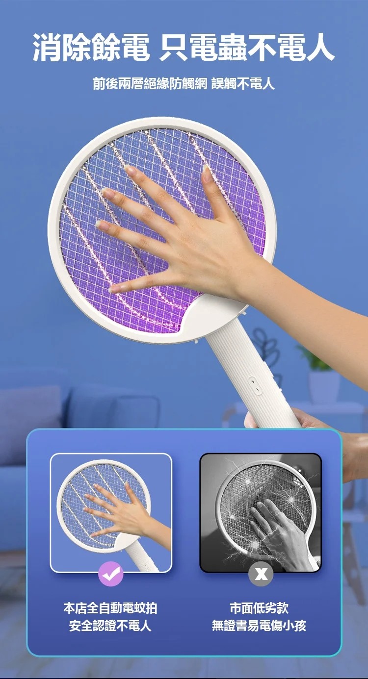 2分鐘前熱賣 四合一多功能電蚊滅蚊拍,立式/壁挂/手持式/可摺叠,雙效自動滅蚊! - 【超值特惠】2入組-NT$1190